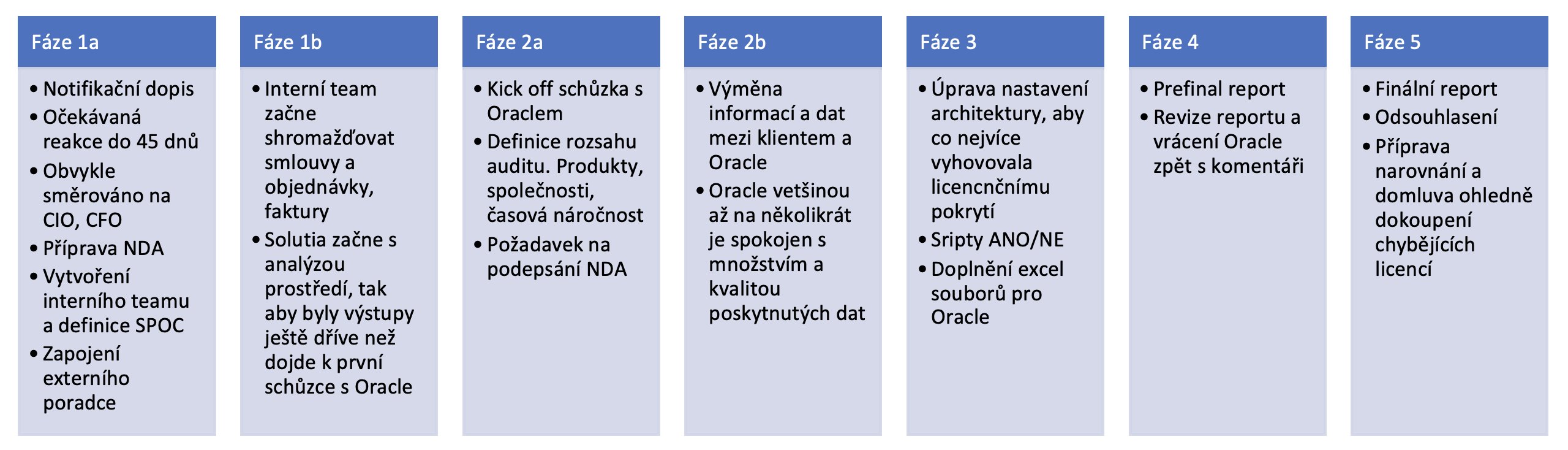 Nastavíme s vám strategii a poradíme jak se na audit připravit, jak ho oddálit, vysvětlit vám jaké máte práva vůči Oracle a jak celkově vyjít z auditu vítězně.